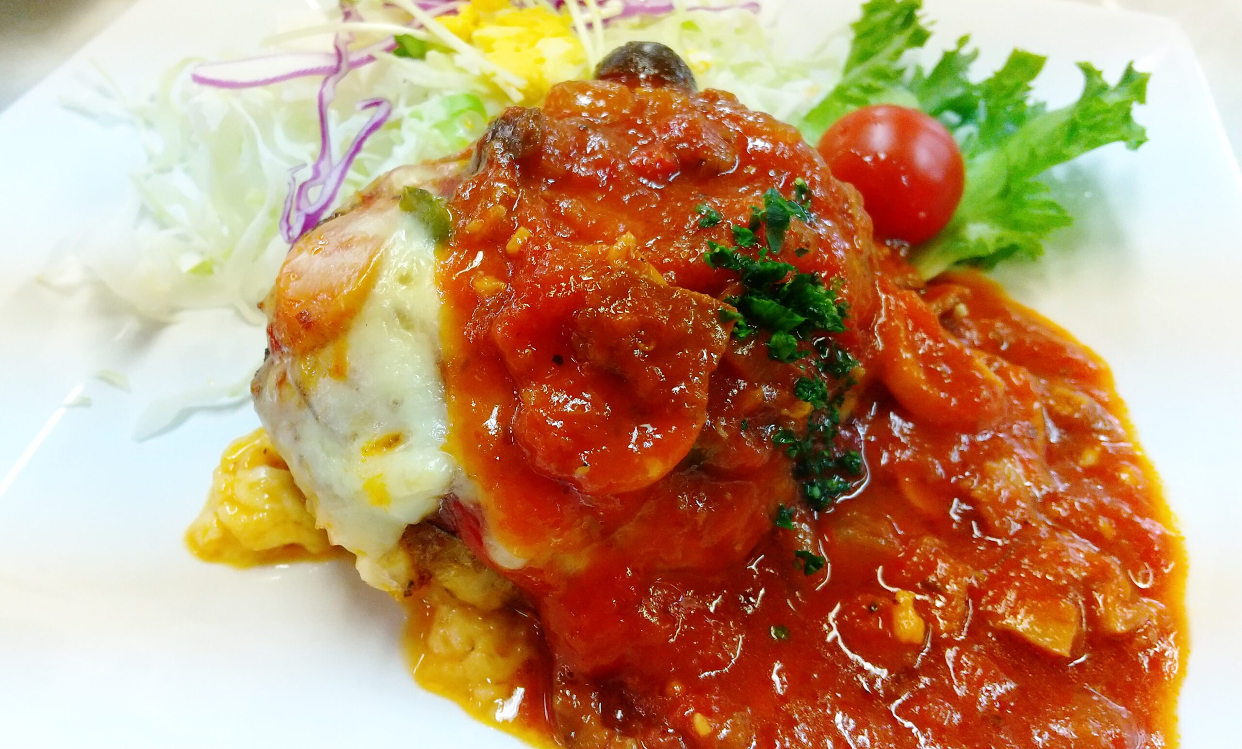 学生食堂 日替りメニュー- 特製ハンバーグ<トマトソースのチ...
